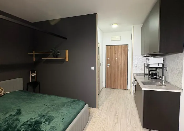 Goście mogą korzystać z aneksu kuchennego z piekarnikiem do samodzielnego przygotowywania posiłków. 15 min jazdy samochodem od lotniska Chopina oraz w malej odległości do stacji kolejowej Warszawa Wola.